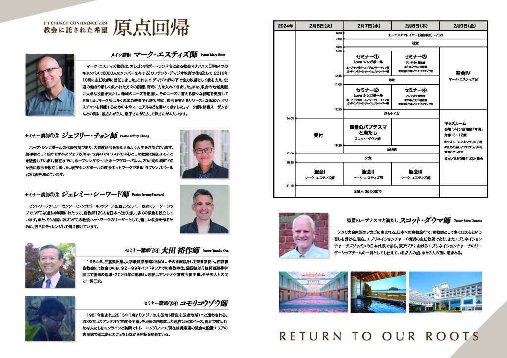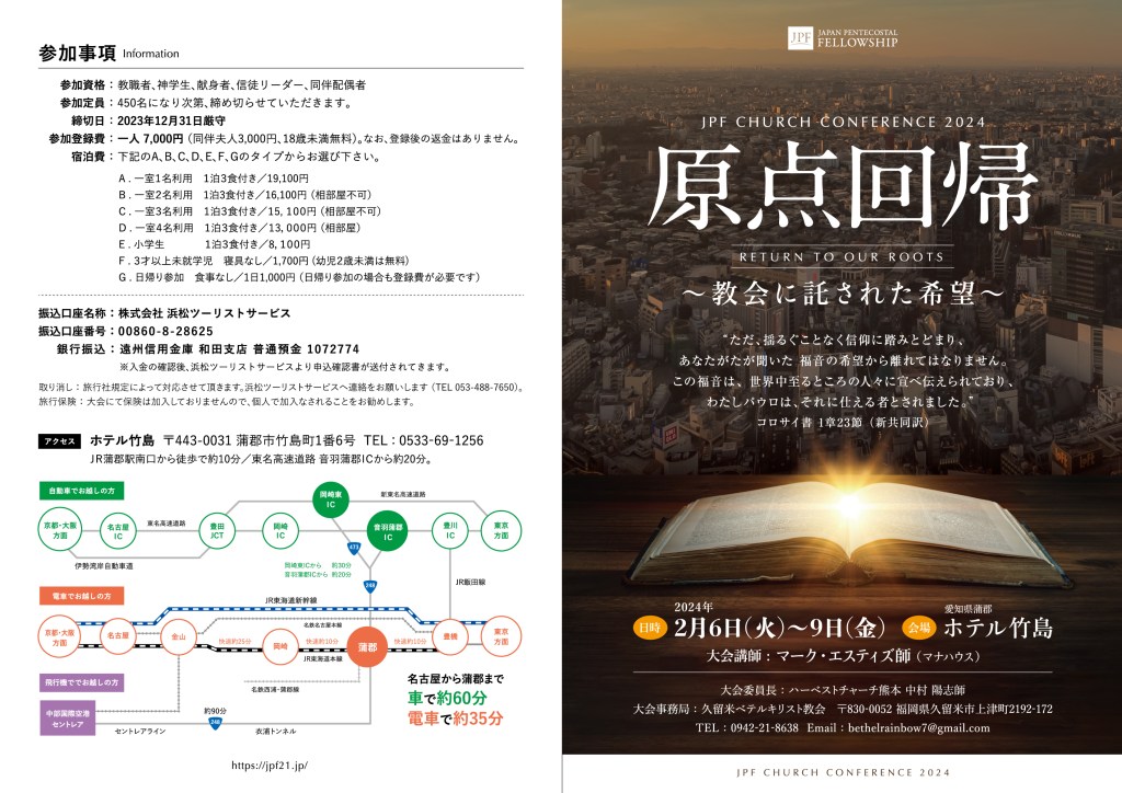 また、物価高騰等で宿泊費などの圧迫を懸念しまして、2泊3日に圧縮して開催いたしますが、4回の聖会は変わらずに行います。