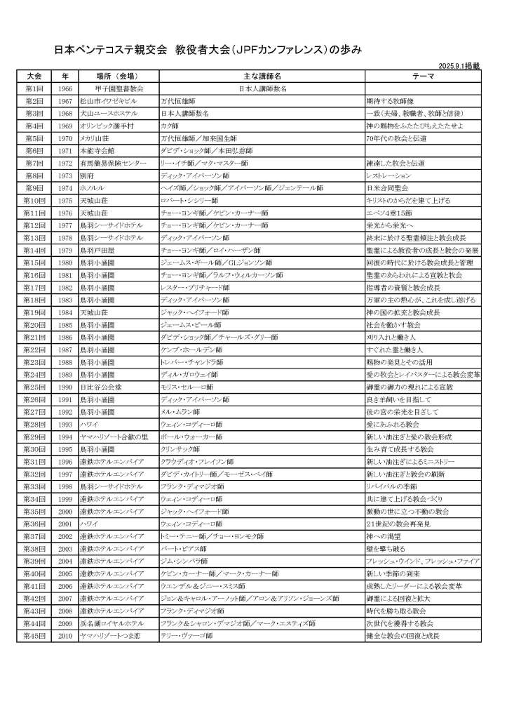 1966-2025 日本ペンテコステ親交会歩み